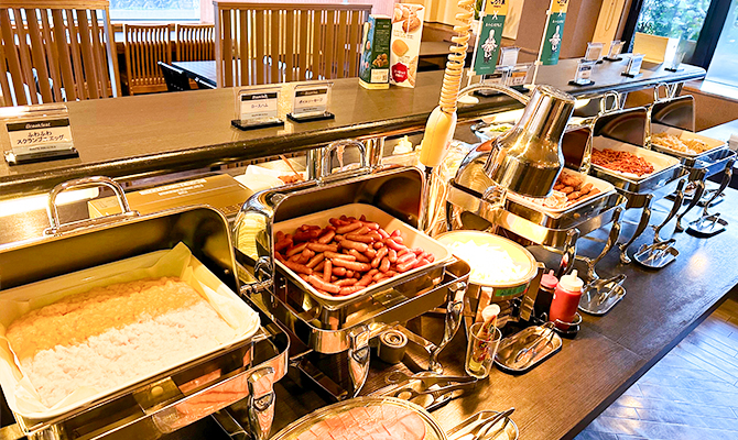 ホテルプランは朝食バイキング付き!