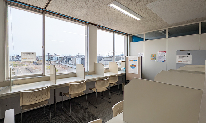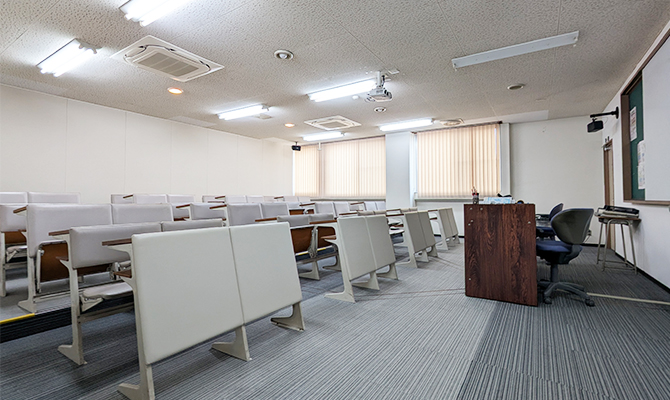 学科教習、仮免許学科試験などを実施する学科教室は、50名を収容できる広々とした空間で、リラックスして学ぶことができます。また自習室もあり、快適に勉強に集中できる環境が整っています。
